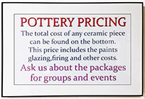 1)“Special” Package ($20/per child) includes: Any ceramic Pieces on the shelves